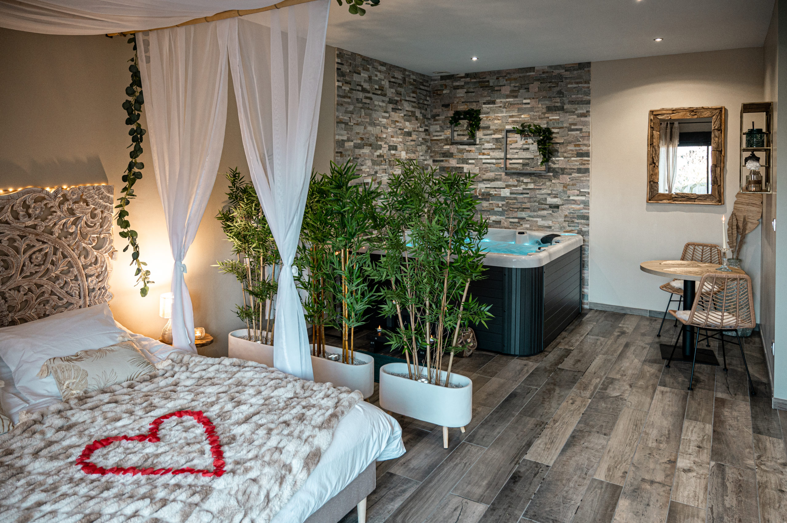 Un bain à remous dans chaque suite pour un massage unique, vous offrant un effet relaxant immédiat. Les suites sont chacune aménagées d’équipements pour un confort comme à la maison ainsi qu’une terrasse en extérieur privative.