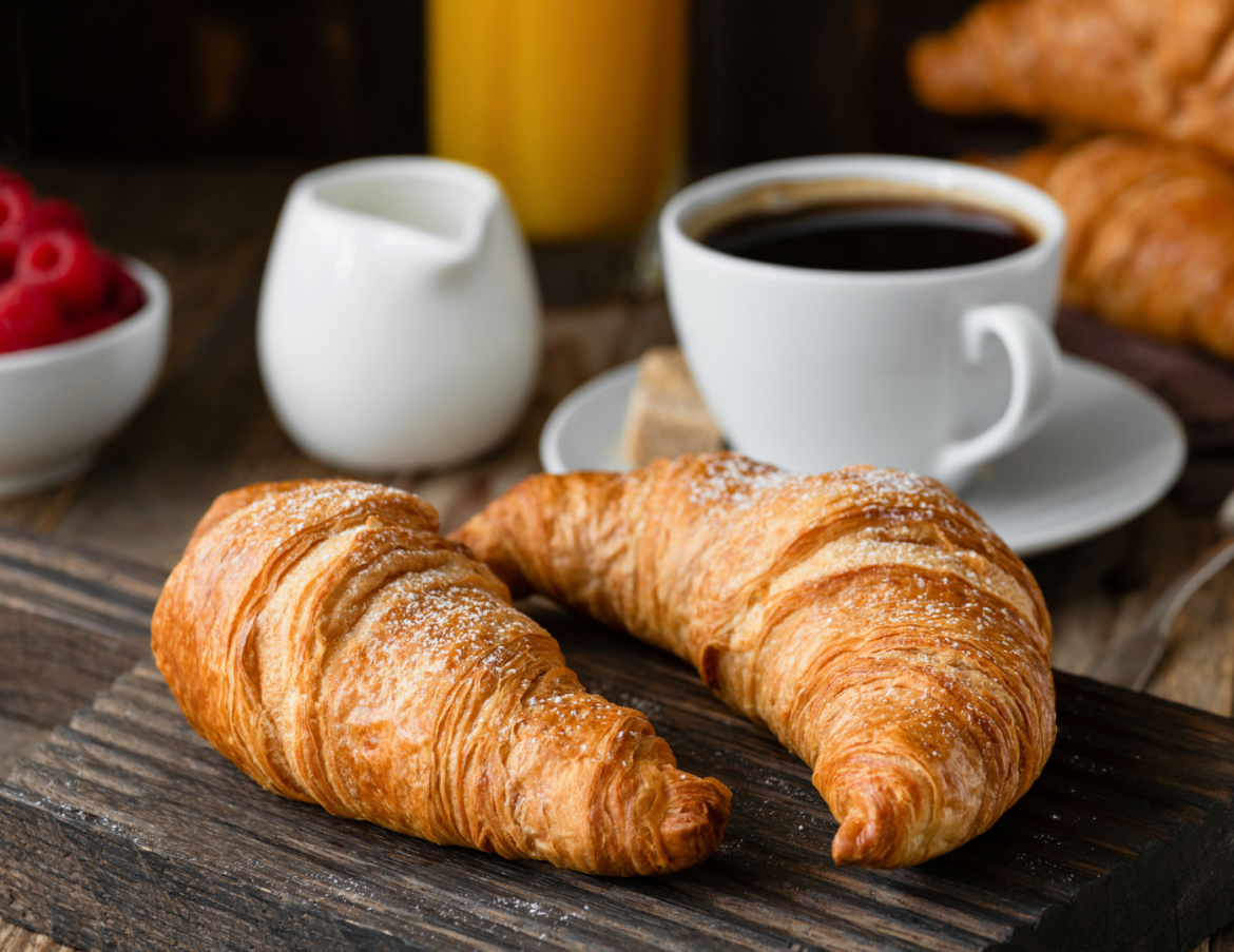 Petit-déjeuner copieux, composé de viennoiseries et boissons du matin